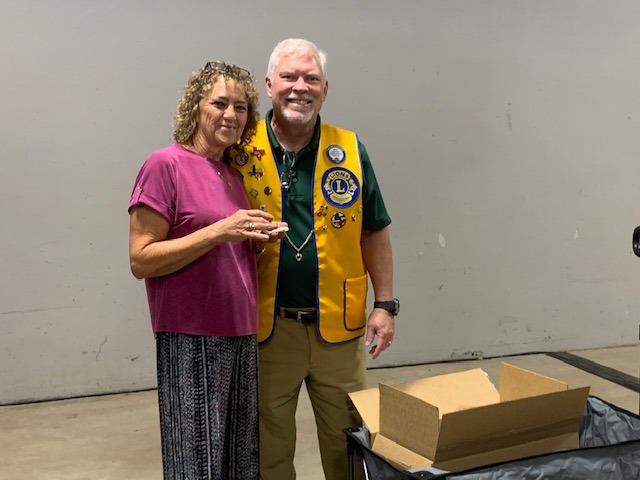 Congratulations! 2024-2025 President Jennah Gliha; 2025-2026 President Jon Fontenot presented Lion Keith Cook with a plaque as Lion of the Year for his Service and Dedication to the Club!